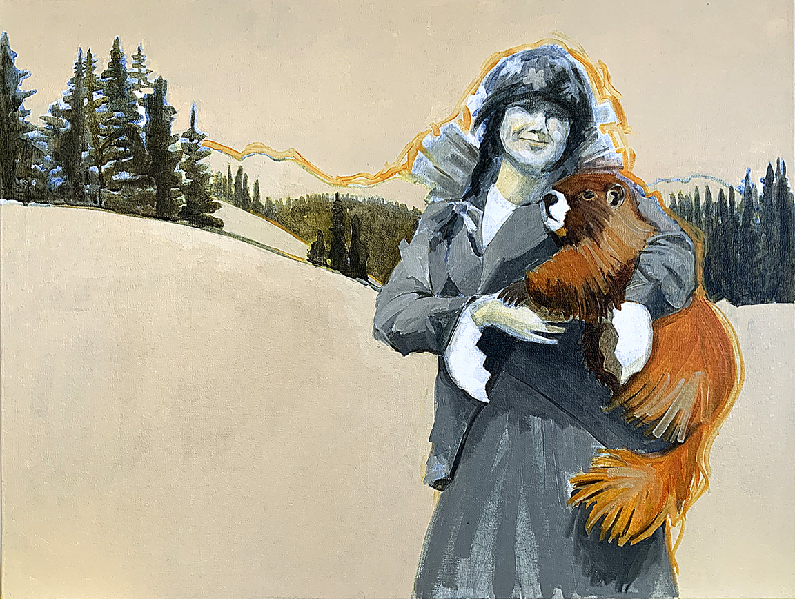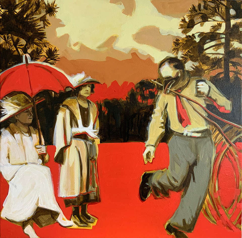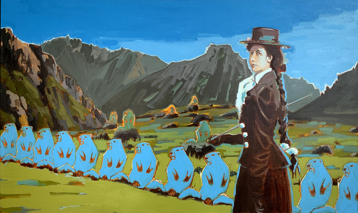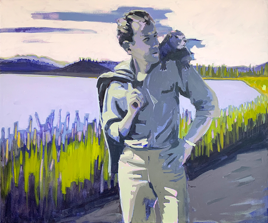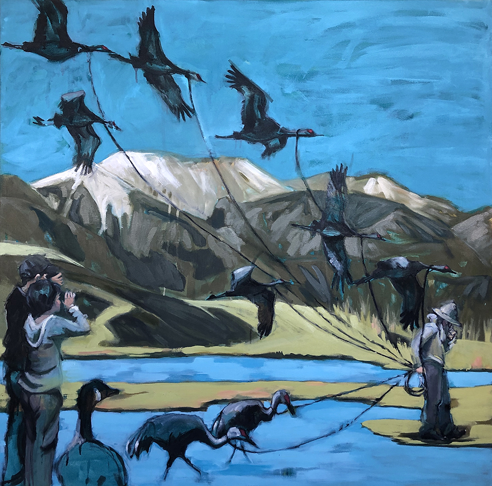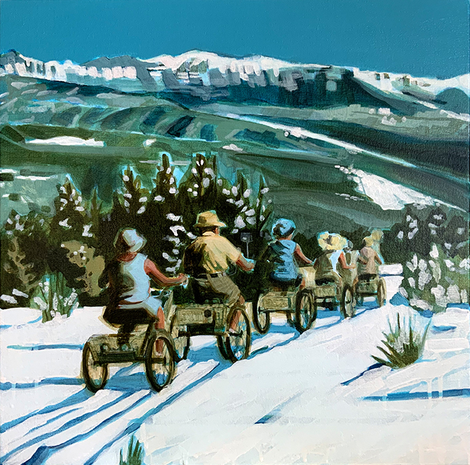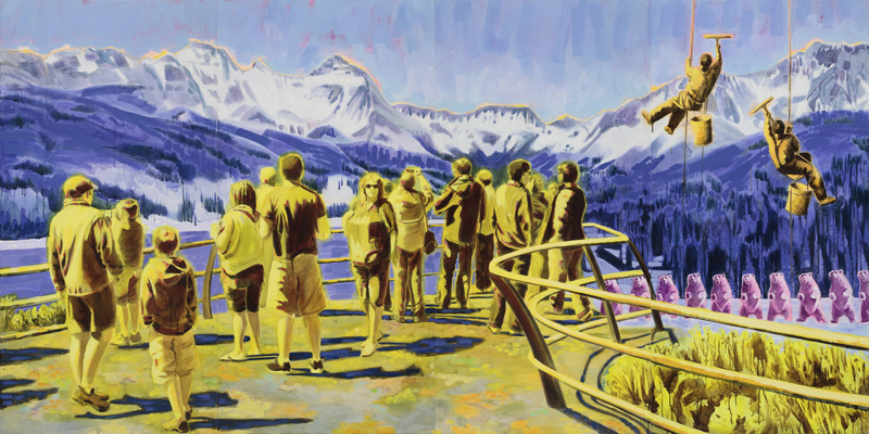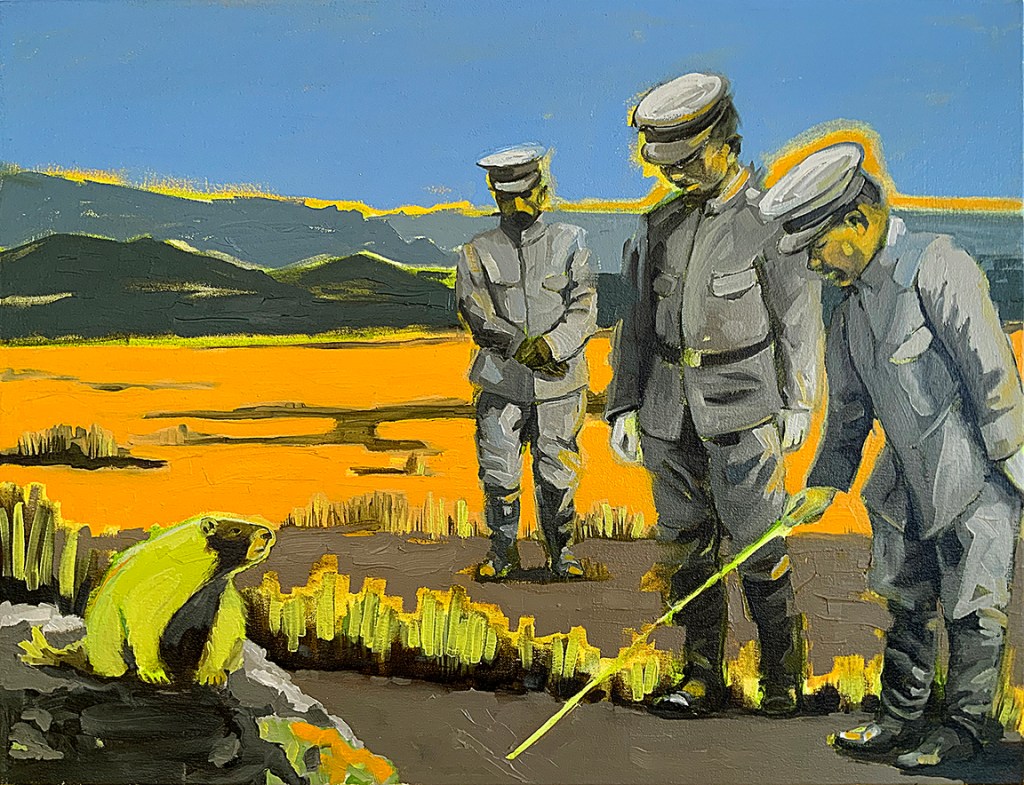 Artist’s statement: The series “We Want Our View and Eat It Too” explores how we, as tourists, interact with the natural world, especially when visiting National Parks and other beautiful places. These paintings examine our relationship with the natural landscape, its wild creatures, and preserved historical sites, while questioning our notions of fair use and conservation.