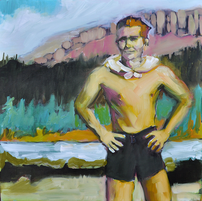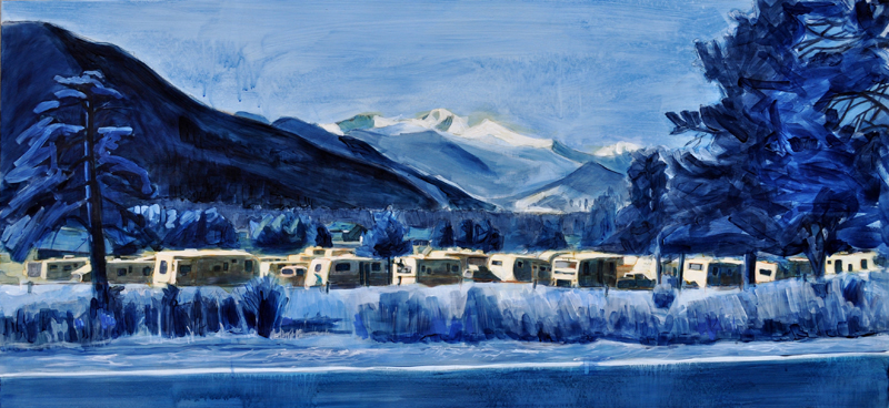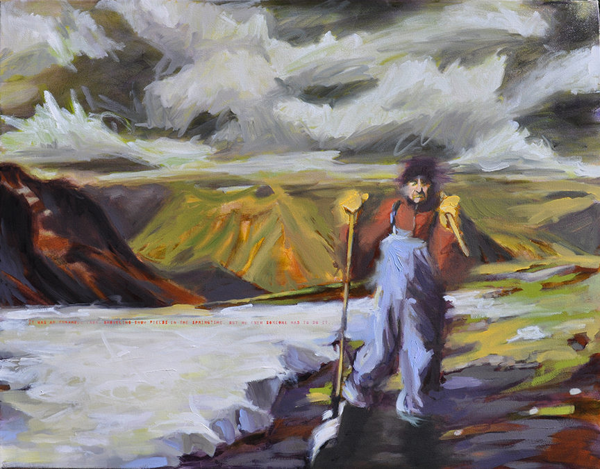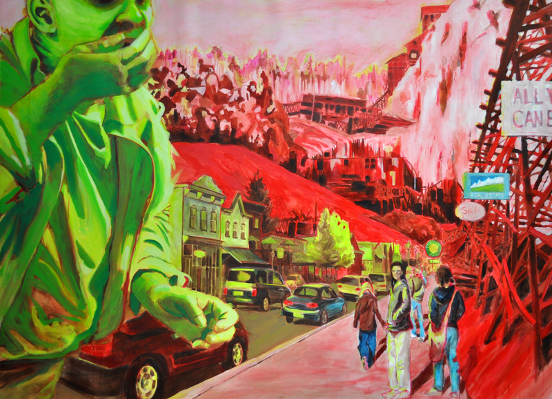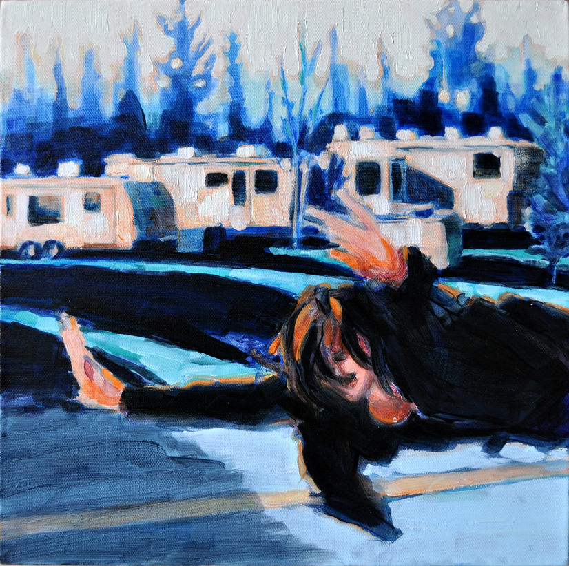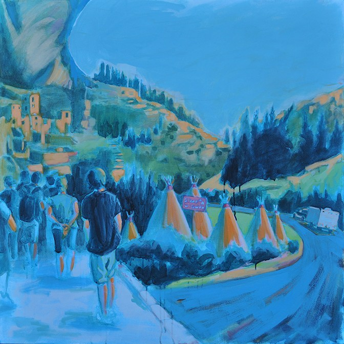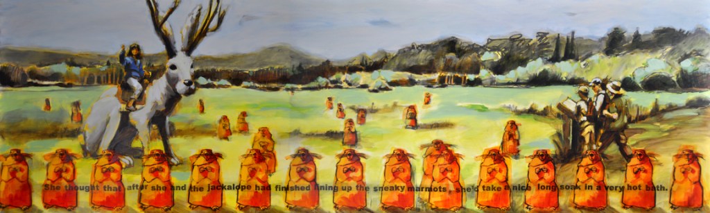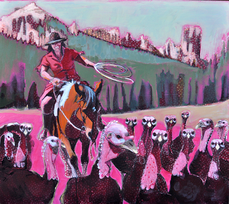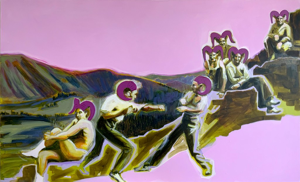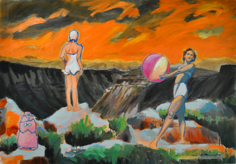 Artist’s statement: The series “We Want Our View and Eat It Too” explores how we, as tourists, interact with the natural world, especially when visiting National Parks and other beautiful places. These paintings examine our relationship with the natural landscape, its wild creatures, and preserved historical sites, while questioning our notions of fair use and conservation.