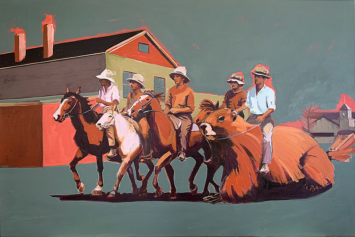 My portfolio showcases various series of paintings created throughout my career. My work tends to investigate our relationship with the natural world, with its creatures, with each other, and with ourselves. I make social commentary with a sprinkling of humor, a titch of nonsense, a dash of self-deprecation, and a pinch of bird droppings. Please find my contact information below. Feel free to get in touch if you have any questions or would like to purchase a painting or commission one.